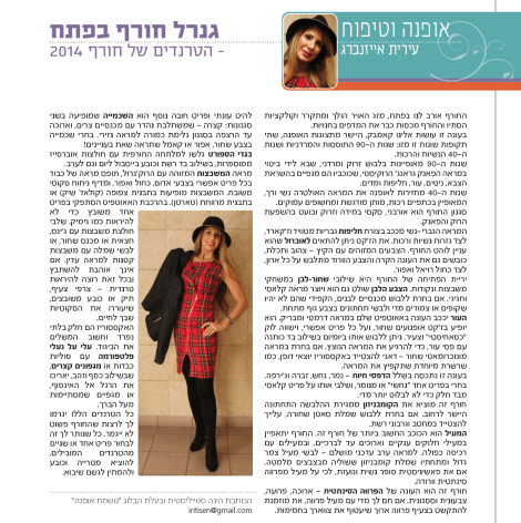 גנרל חורף בפתח – הטרנדים של חורף 2014 נובמבר 10, 2013 · מאת reshefeis · סמן בסימניה את קישור ישיר. · כתבת הבכורה שלי שפורסמה היום במגזין "חיים בעמק": שתף לחיצה לשיתוף ב-X (נפתח בחלון חדש) X לחיצה לשיתוף בפייסבוק (נפתח בחלון חדש) פייסבוק אהבתי טוען... קשור