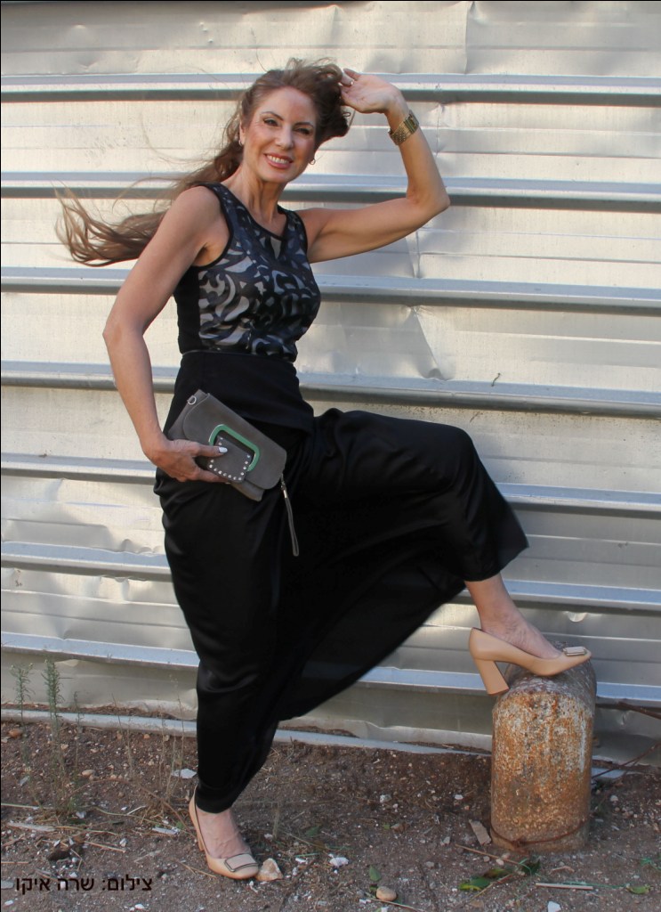 בחרתי בלוק שמעניק מראה נשי ורך עם טעם של פעם. חצאית מקסי שחורה, קרובה במידה אל הגוף ומקנה מראה ארוך וצר.